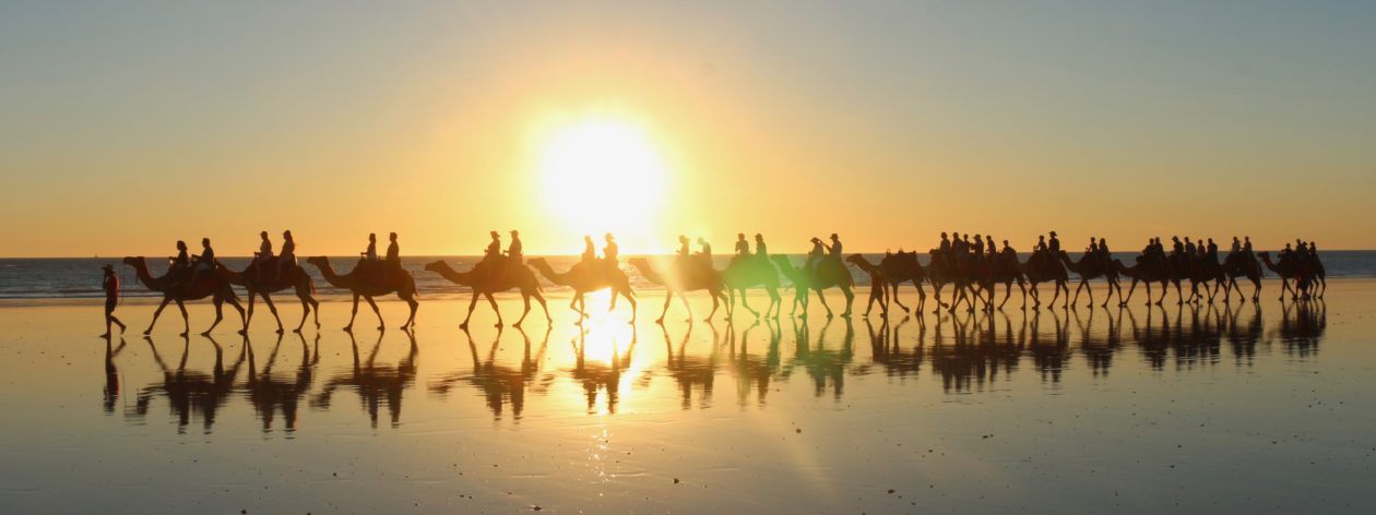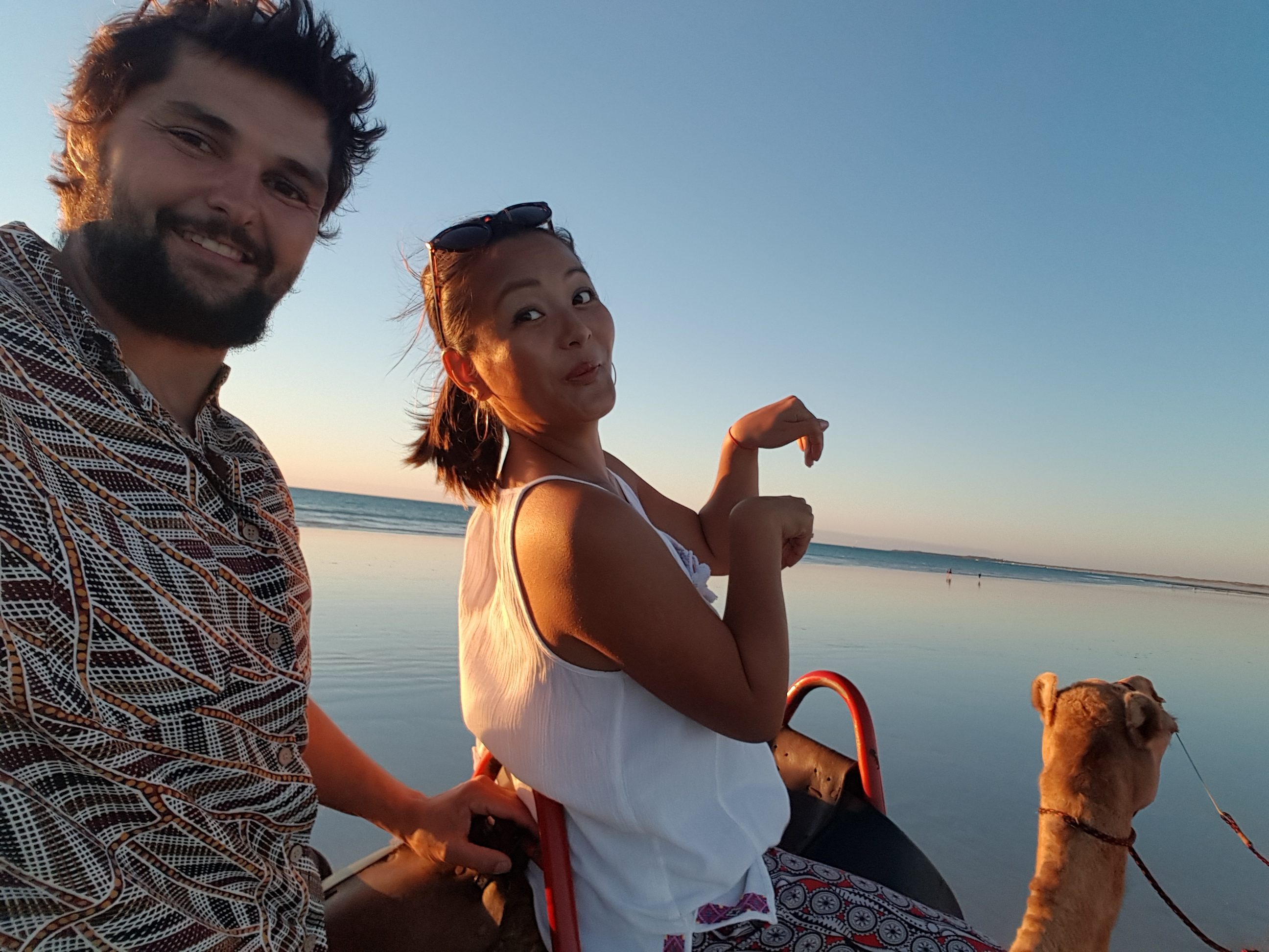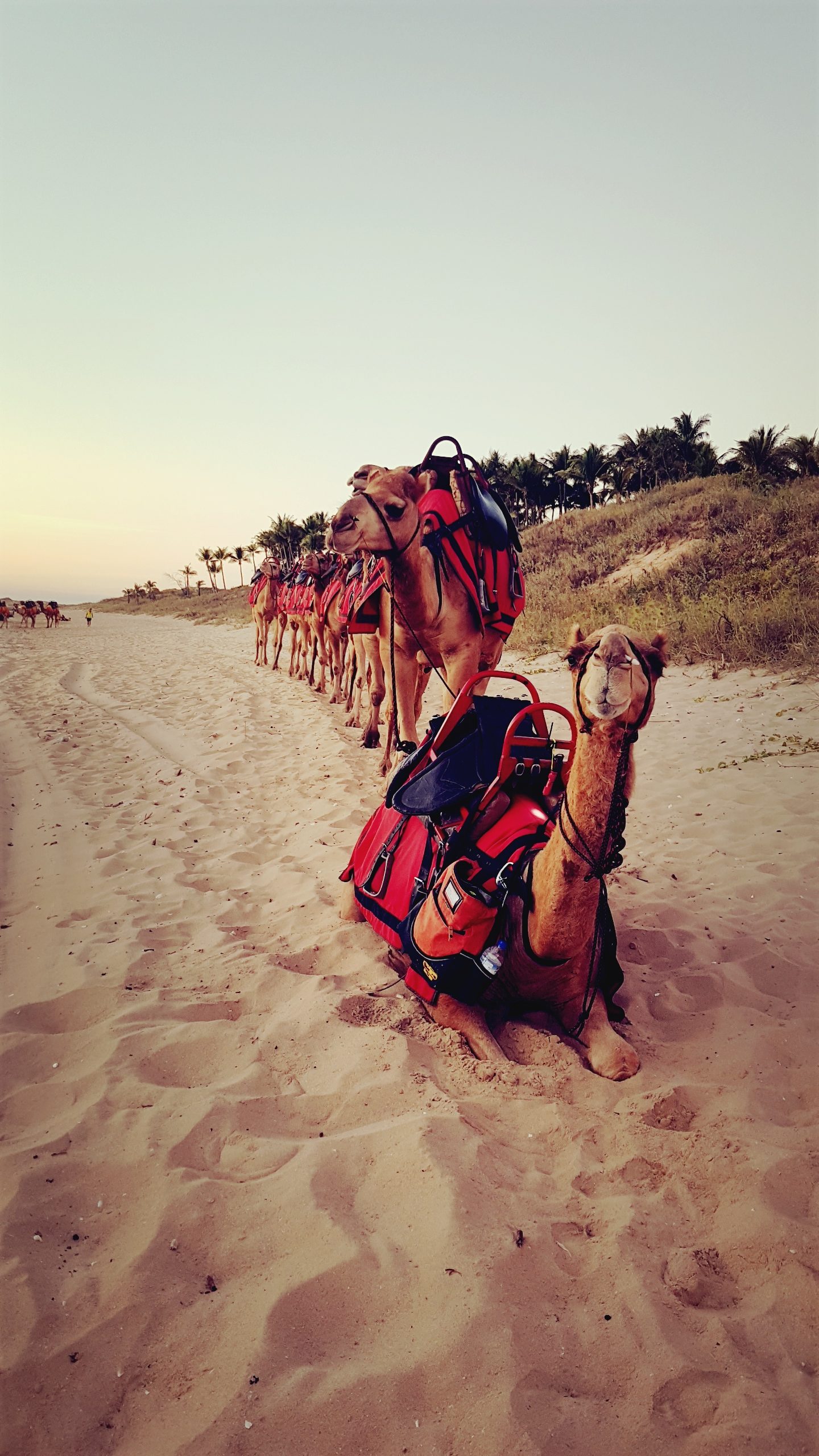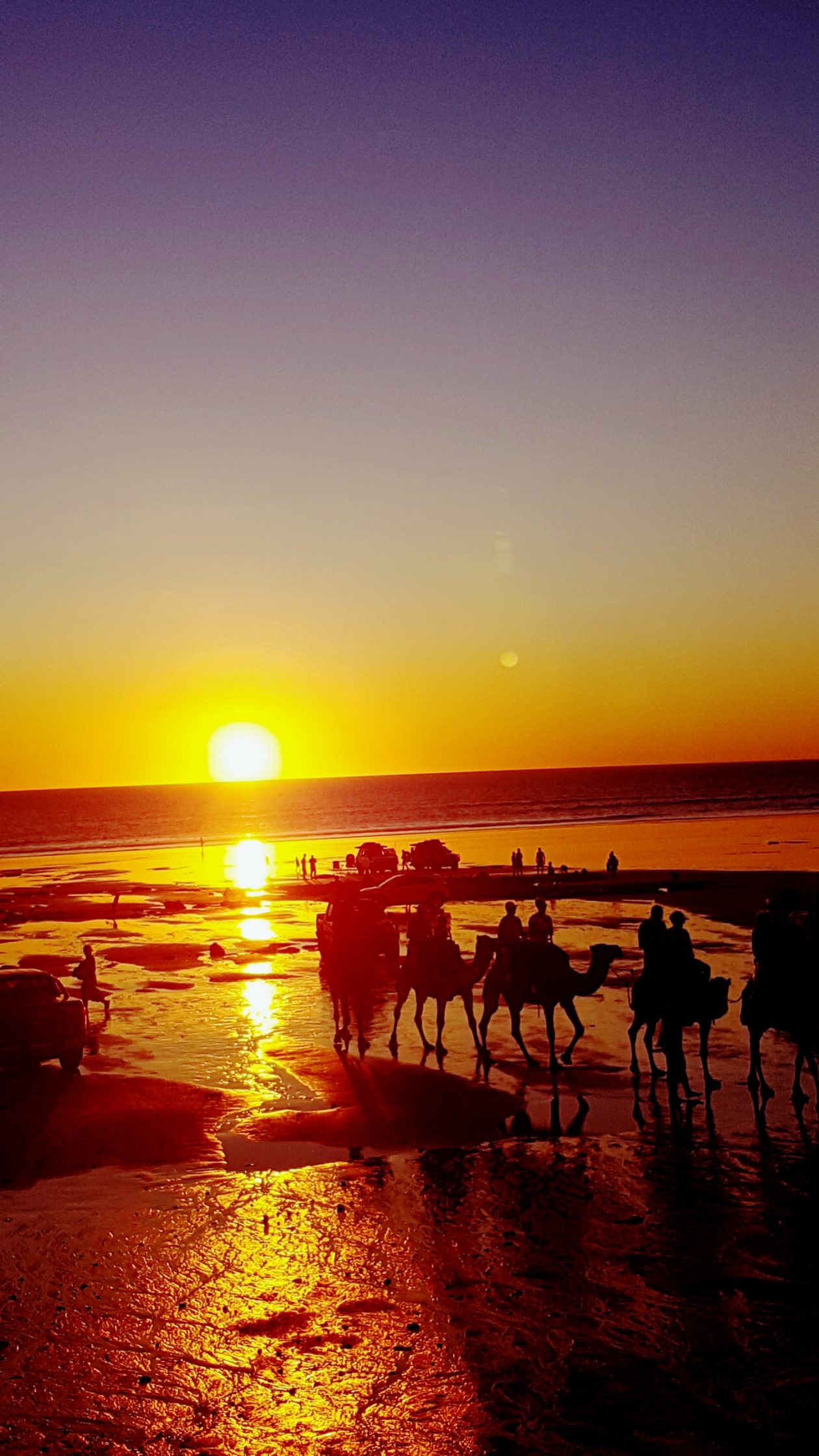 Sinon à Broome, il y a Cable Beach, je pense que c’est de cette plage qu’on à vu nos plus beau couché de soleil ! Et on y a vu des dromadaire aussi, alors on en a profiter pour en faire un tour, pour le 14 juillet.