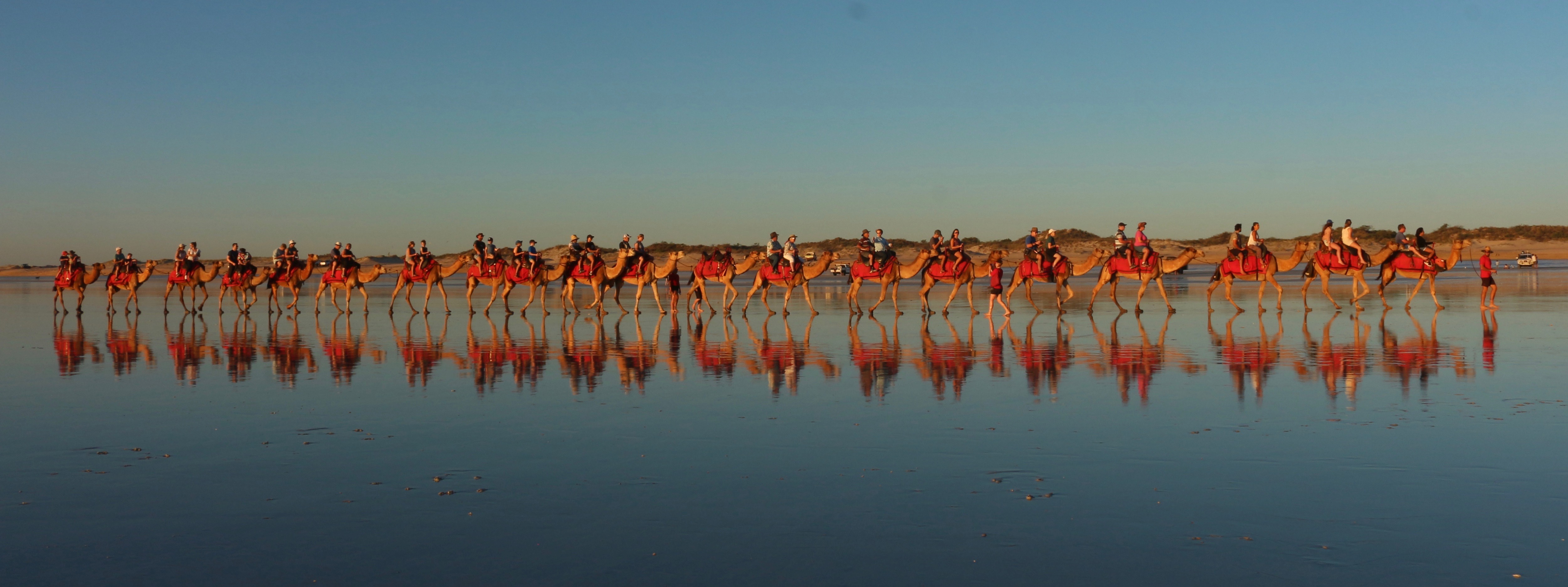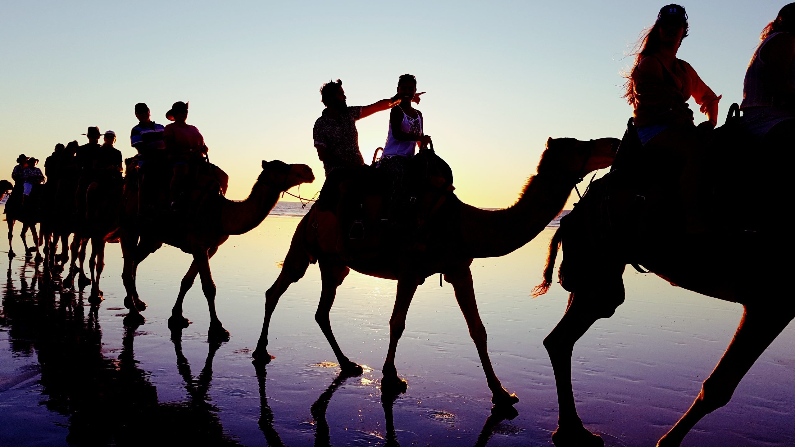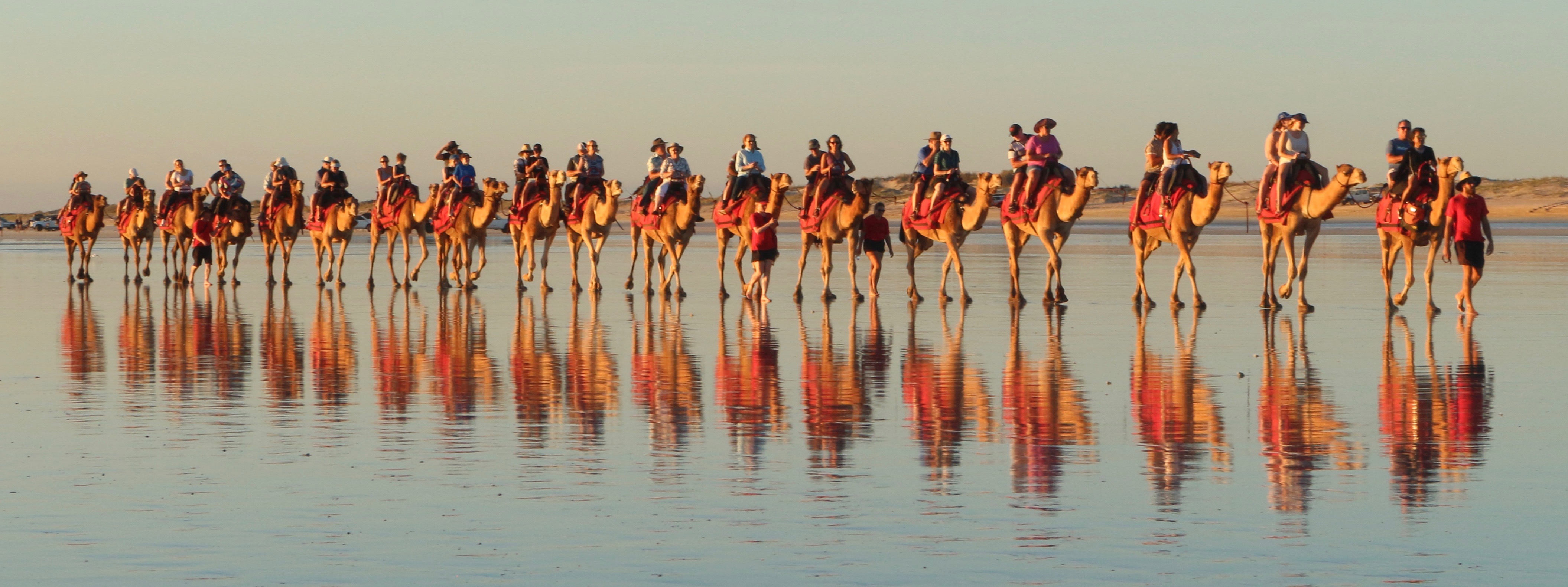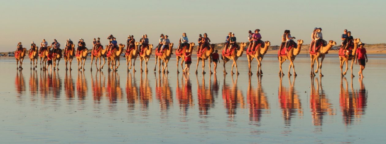 Sinon à Broome, il y a Cable Beach, je pense que c’est de cette plage qu’on à vu nos plus beau couché de soleil ! Et on y a vu des dromadaire aussi, alors on en a profiter pour en faire un tour, pour le 14 juillet.