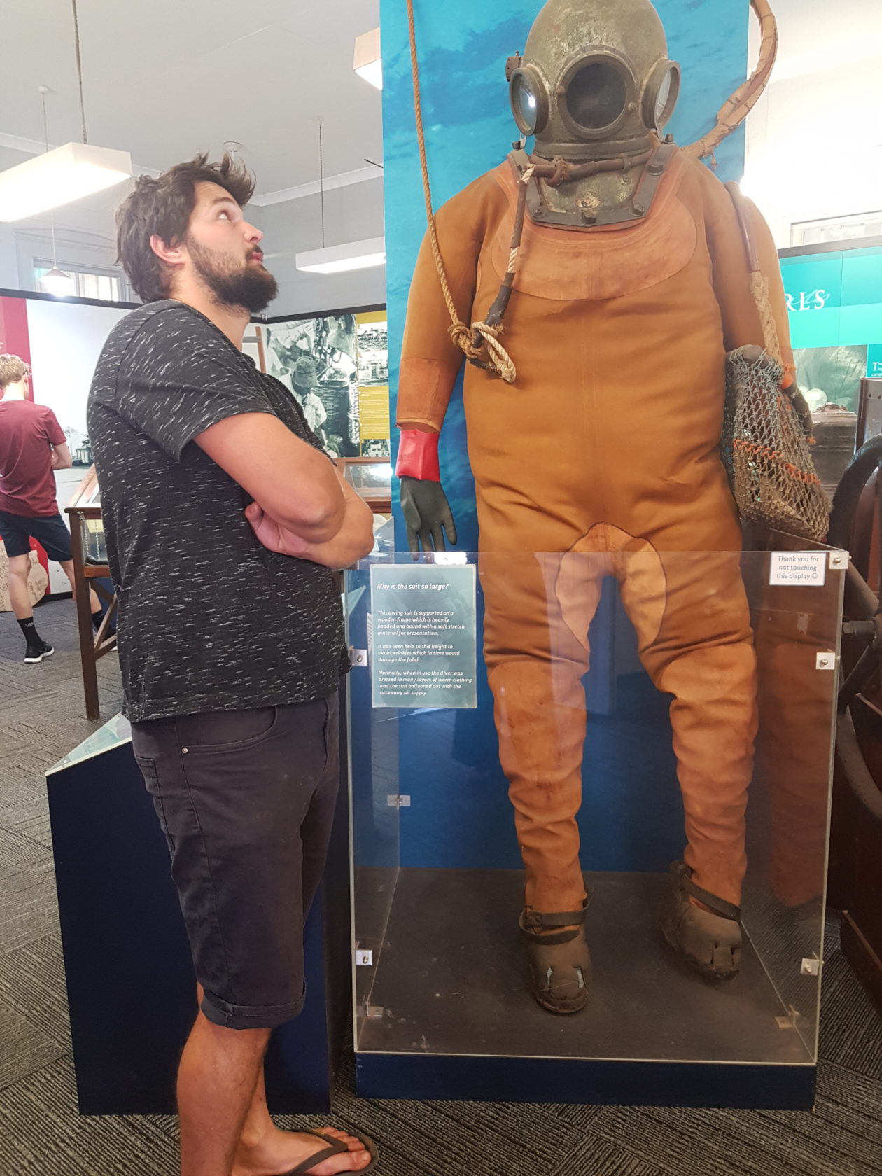 Tout d’abord, présentation de cette petite ville de 12 000 habitants, qui fut la capitale de l’industrie perlière depuis au moins 150 ans (ca fait beaucoup quand on sait que l’Australie a été colonisée genre 100 années avant). Ce gros boom de perles a forcément attiré les plongeurs de tout les pays voisins, dont particulierement les japonais, réputé pour rester plus longtemps que les autres, ne craignant pas les serpent de mer, les requins ou autres.