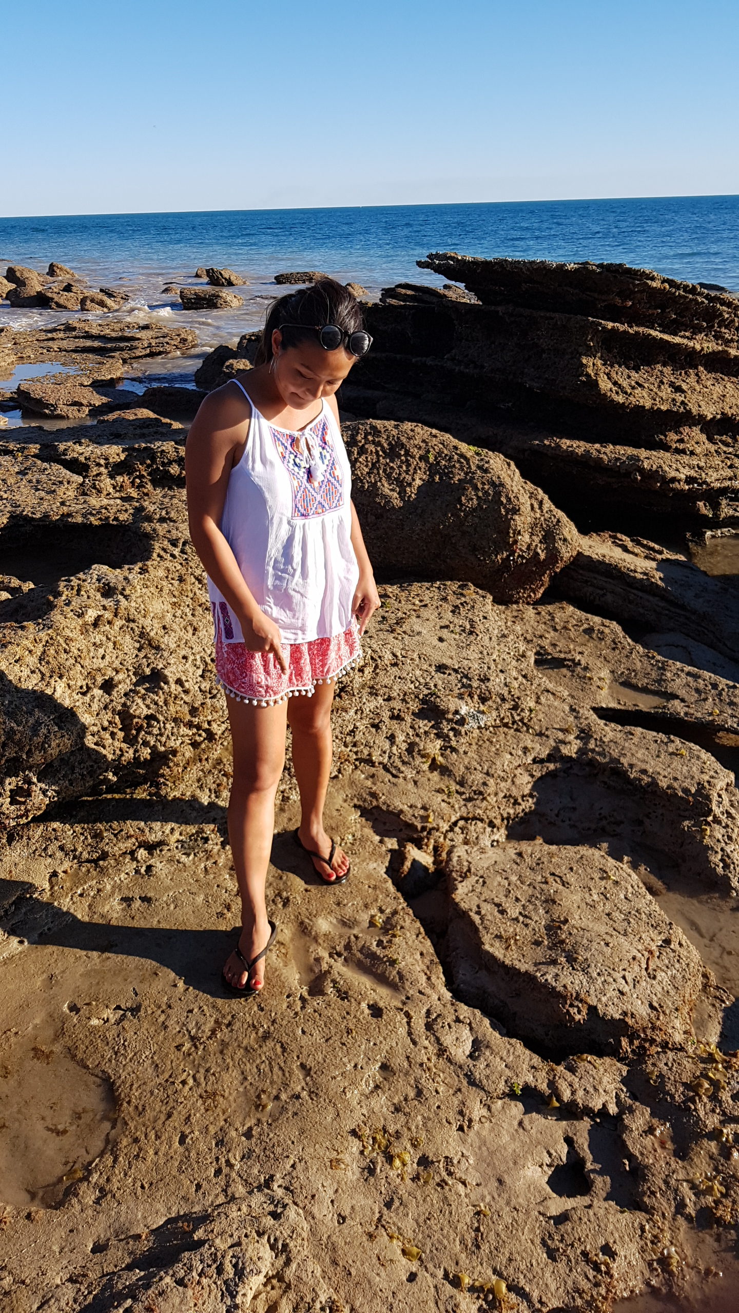 Et parmis les photos, vous avez peut être vu des empruntes de dinosaures ! On a passé une apres midi trés marrante a les chercher, au grés de la marée descendante !