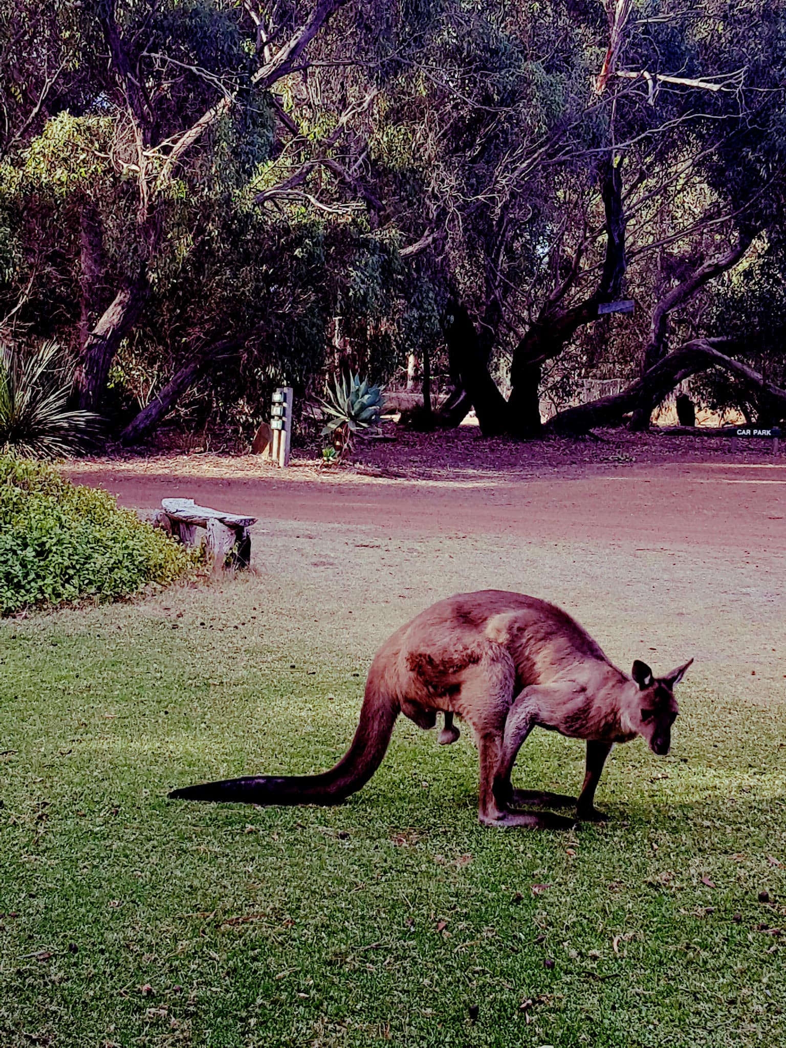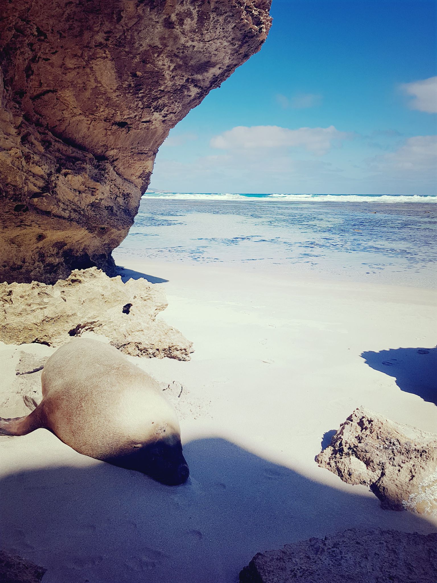 Et qu’elle ne fut pas notre surprise de croiser toute sortes d’animaux en liberté, à seulement quelques mètres de nous : des otaries se reposant sur les plages, des kangourous et walibis qui venaient boire dans le jardin de l’hôtel, un koala qui se reposait sur une branche lors d’une promenade dans le parc national de l’île, des cousins des autruches les émus, des pélicans, et même des dauphins qui nageaient non loin de la côte. Et c’est sans parler des opossum, ces charmantes bestioles qui nous empêchait de dormir le soir !
