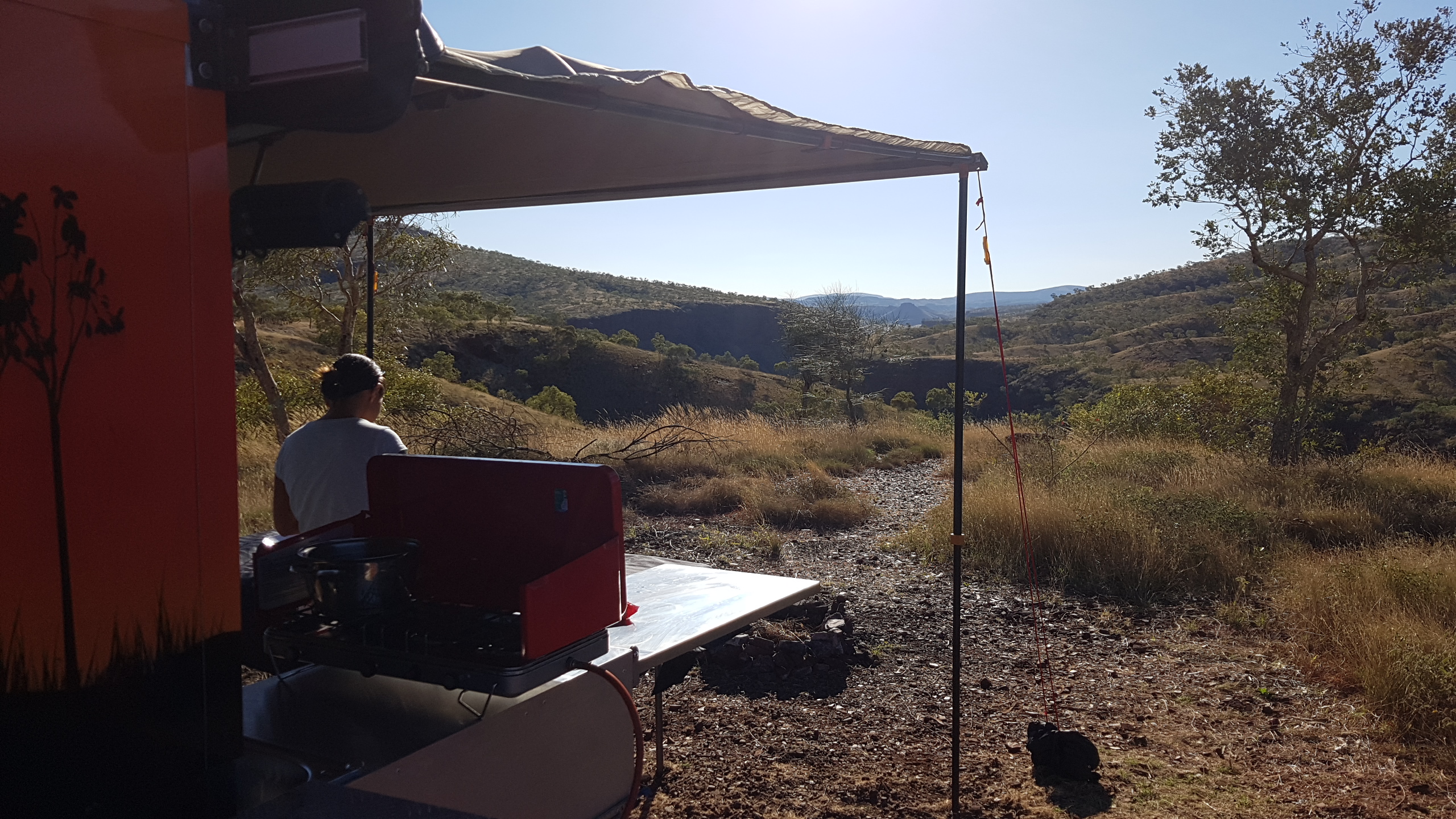 Nous en garderons un souvenir bien particulier : En installant Mya (notre trailer camper) dans un free camp un peu éloigné du parc, nous avions l’impression d’être seul au monde, coupés d’internet ou du réseau téléphonique, avec une vue sublime. Ce sentiment de liberté nous a conduit à rester une semaine au même endroit, laissant Mya et allant visiter le parc quand nous en avions envie, tout simplement. Bon, comme on en parle, on va commencer par des petites photos de notre campement pour mettre l’ambiance :