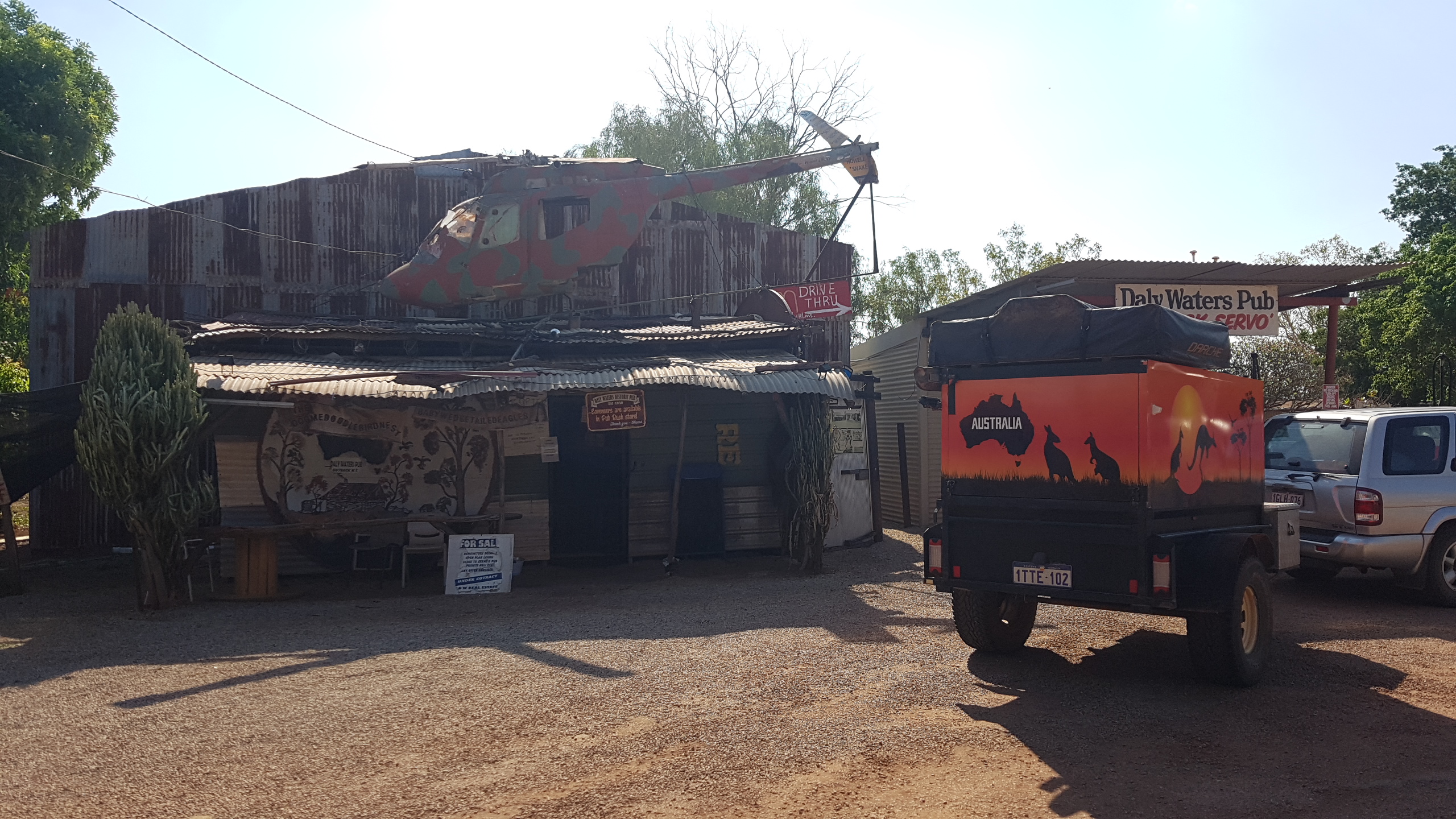 Nous avons commencé notre descente par la petite bourgade de Daly Water, pour aller gouter une biere d’un des bar les plus vieux d’Australie, completement perdu dans l’Outback.