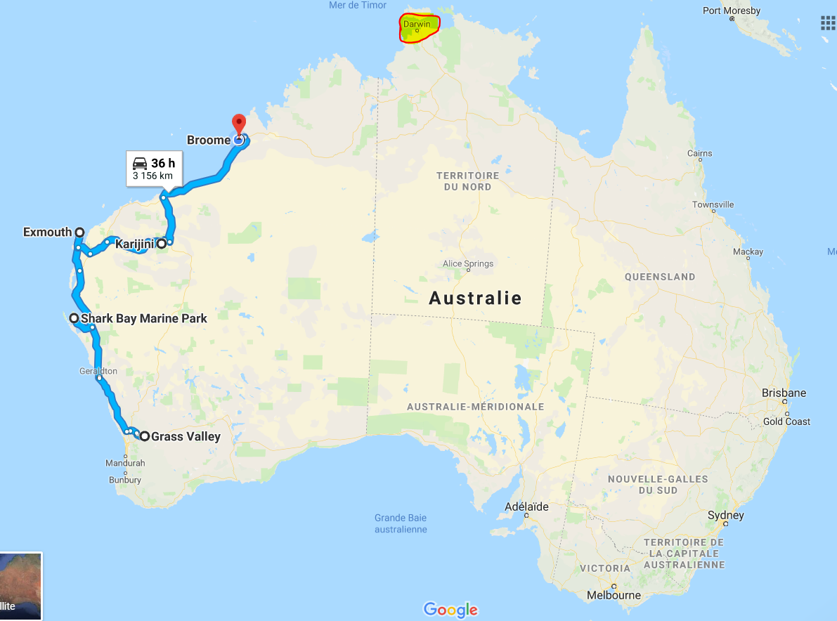 Je parle de Darwin, mais suite à notre visite de Broome, nous avons décidés d’y rester quelques semaines. Ce n’était pas prévu, mais du coup on considère que notre Road Trip sur la côte Ouest s’arrête à Broome !