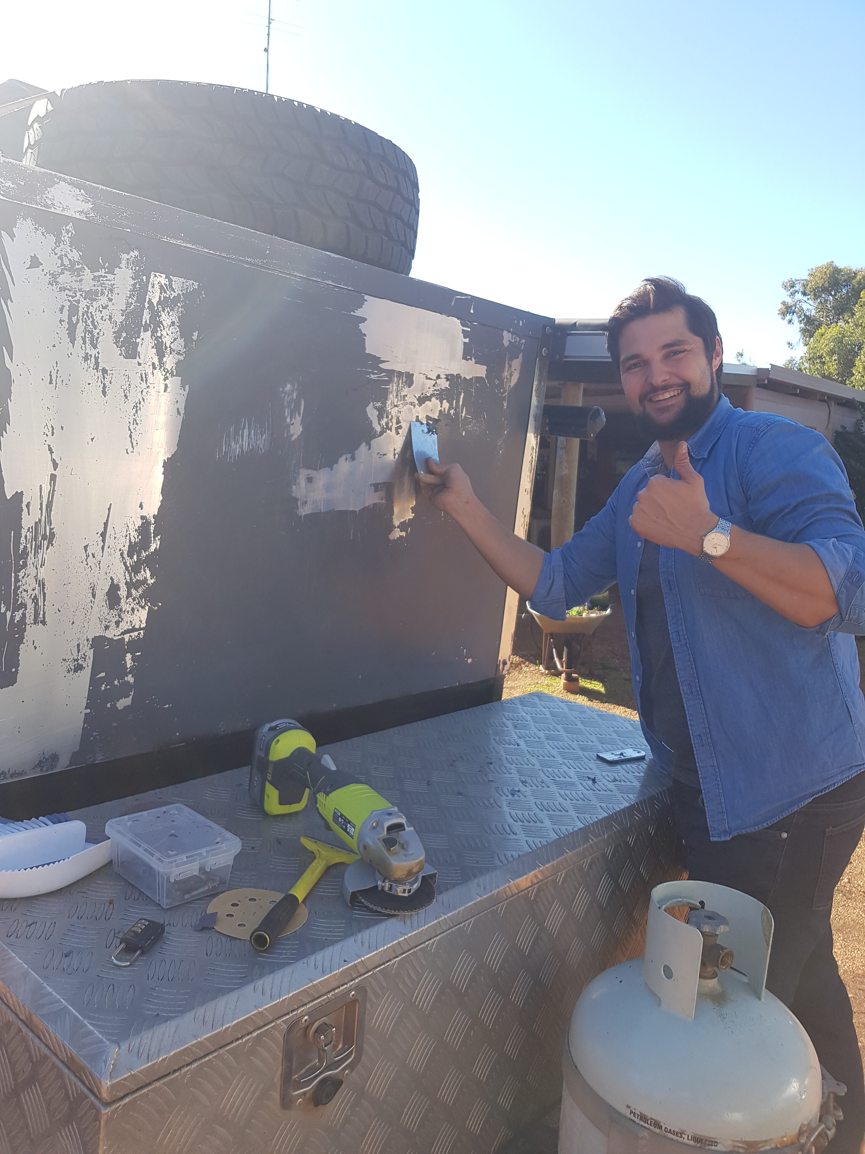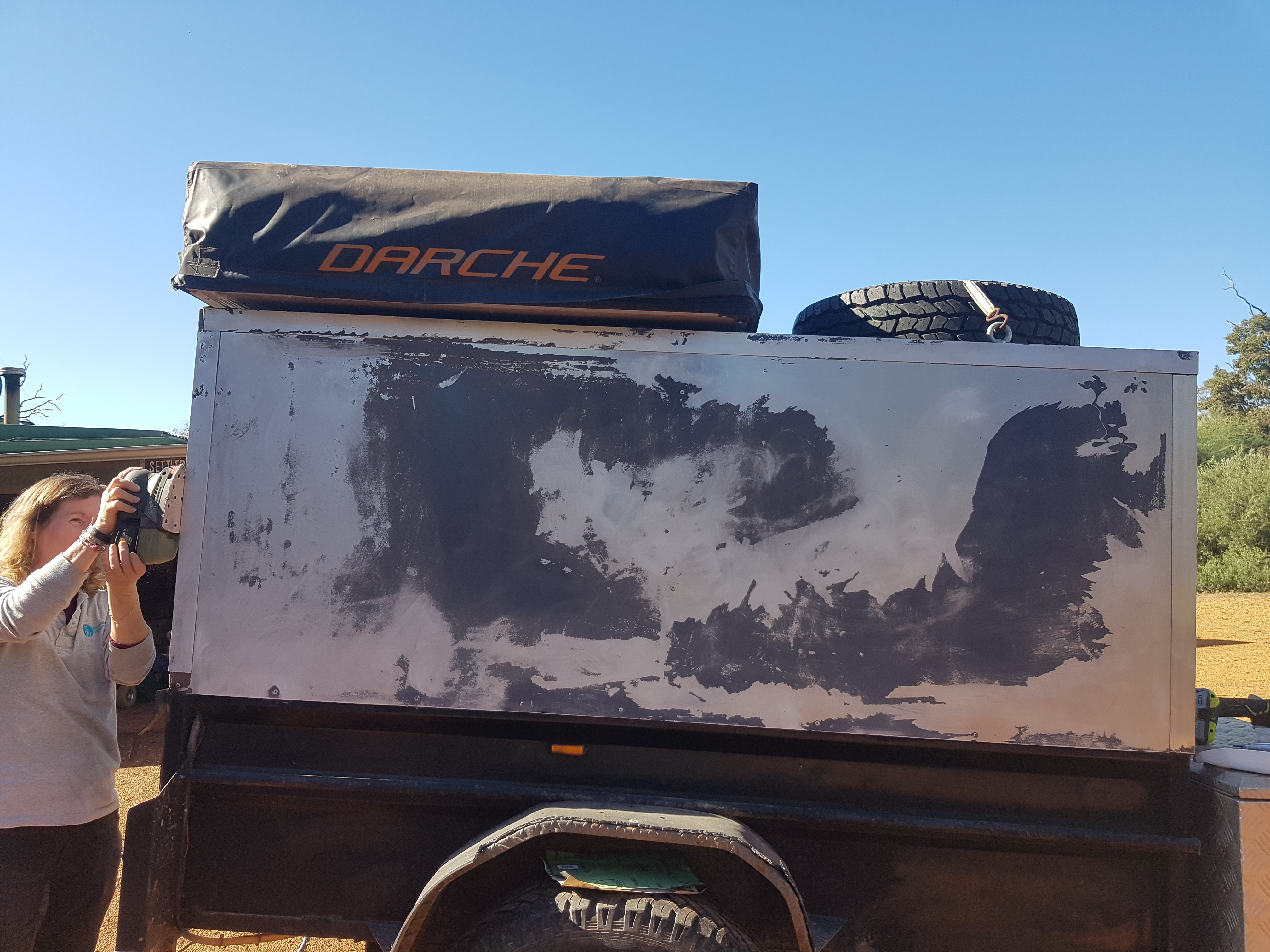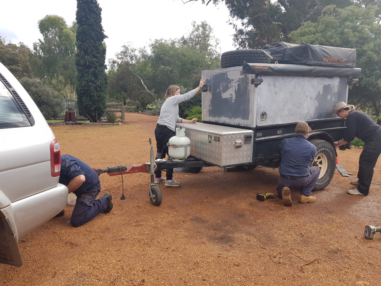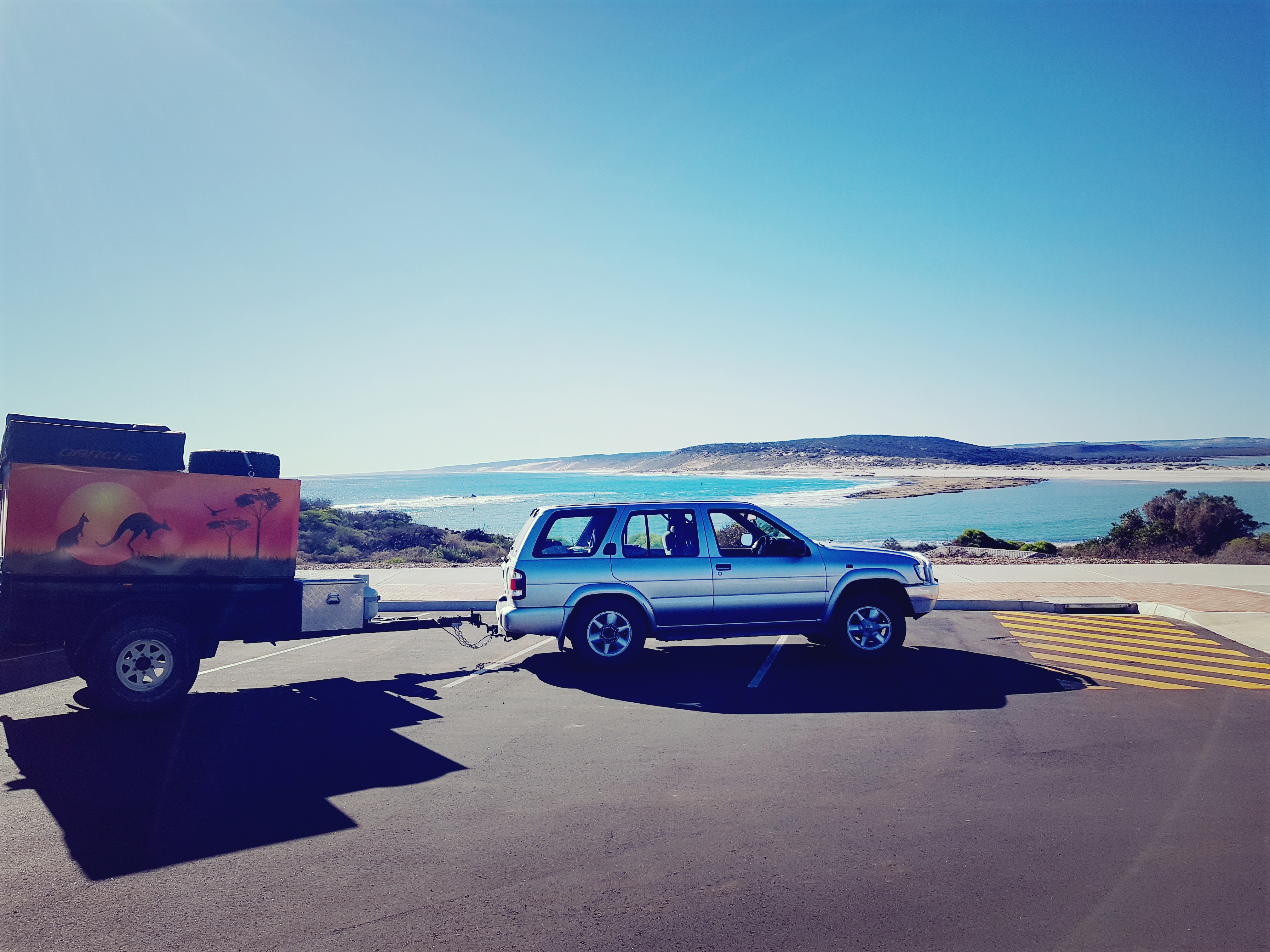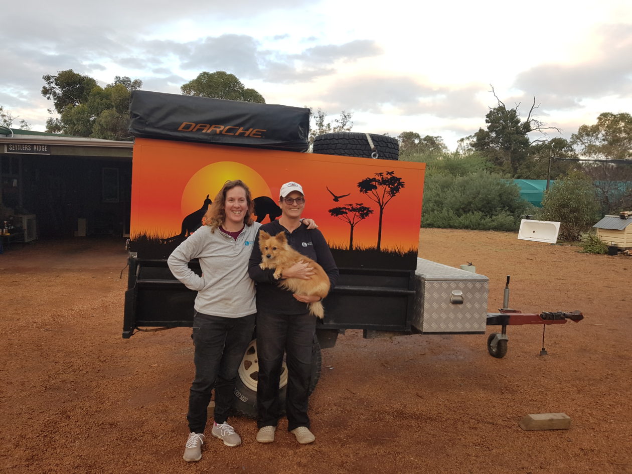 Allez, trêves de bavardage, et hop premier arrêt : la petite ville de toodyay, dans laquelle nous avons fait poser le sticker sur notre trailer ! Et wouah qu’est ce qu’il a de la gueule maintenant !!