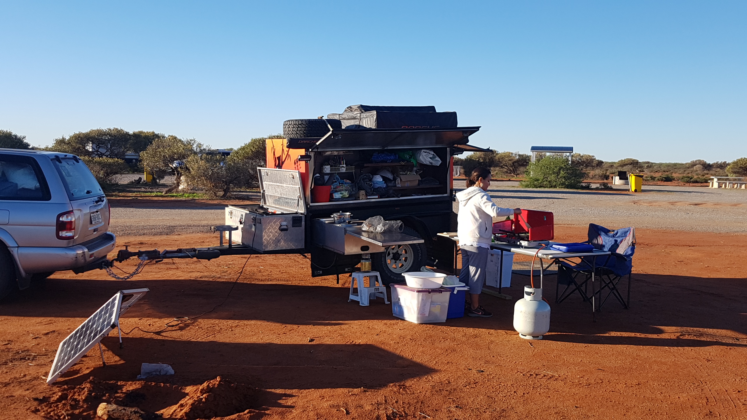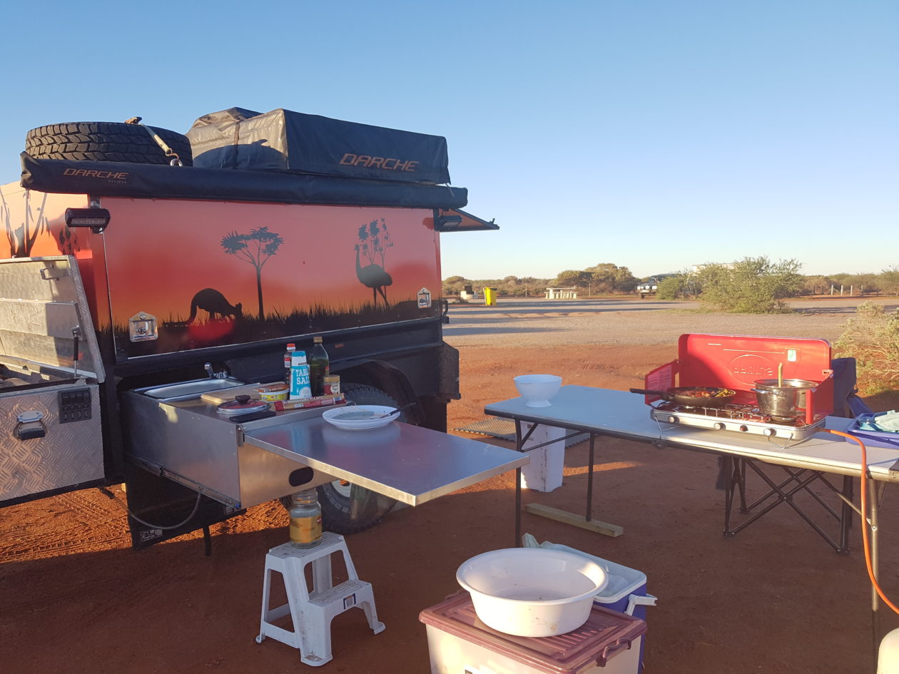 Et si vous vous demandiez comment nous dormions sur la route, nous cherchions des ‘freecamps’, qu’on pourrait qualifier « d’aire de repos » tout simplement, plus ou moins proche de la route ou de Road House (repere des grand voyageurs), et paf, notre magnifique Mia (notre trailer) faisait le reste du travail !